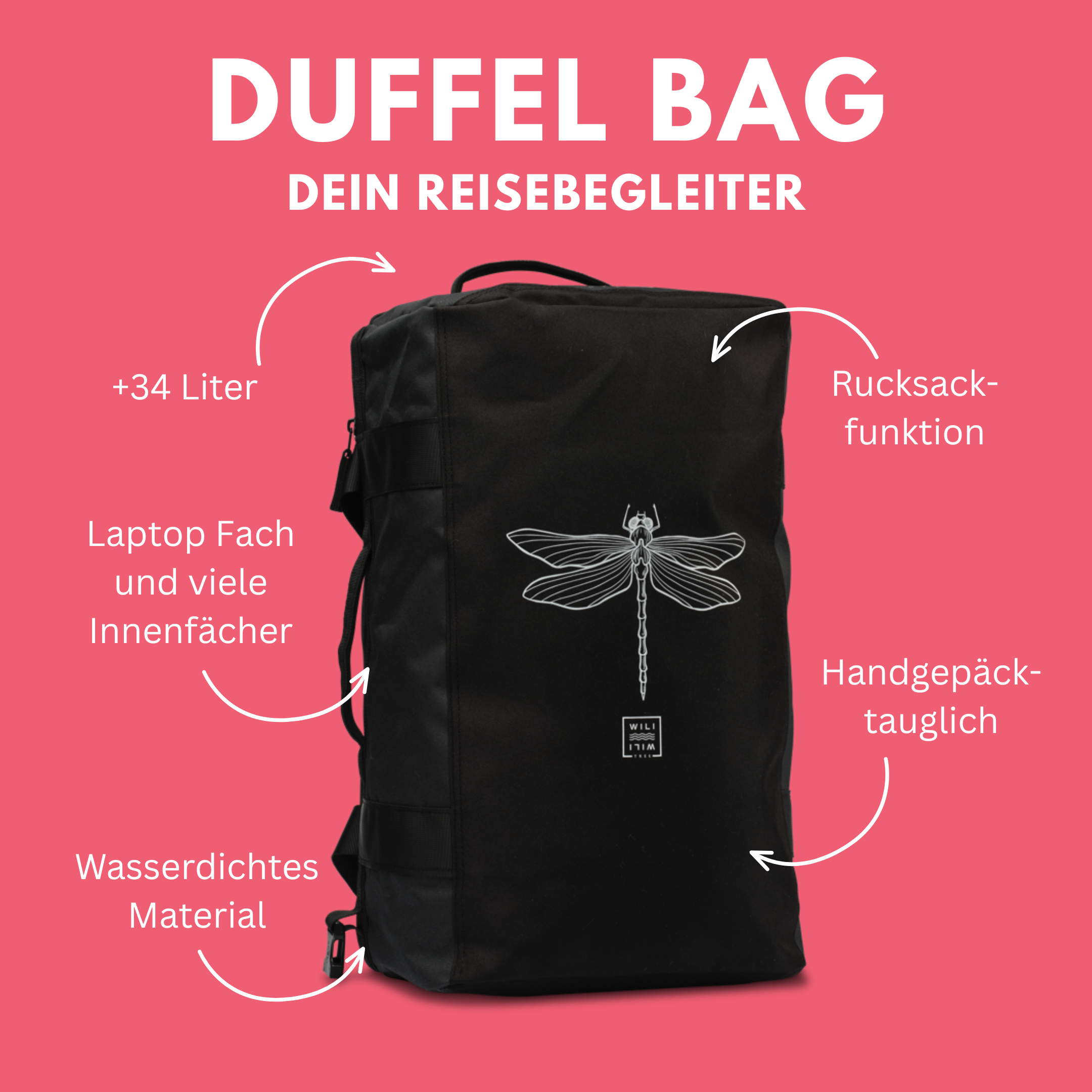 - Bequeme Schultergurte (können auch verstaut werden)